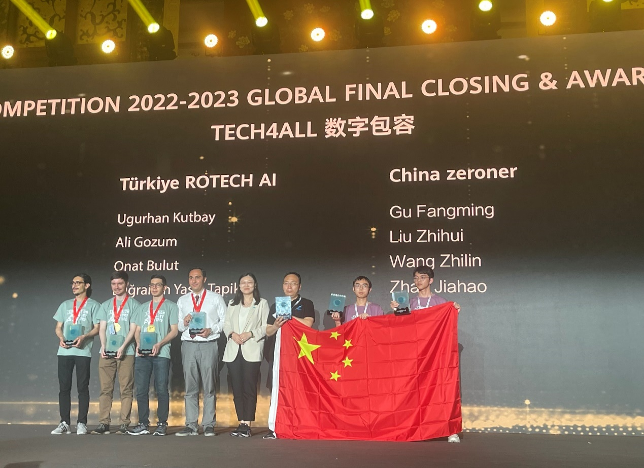 本届大赛自启动以来,吸引了全球74个国家2000多所高校的12万名学生参加。经区域赛、全国赛的层层选拔,最终来自36个国家和地区的146支队伍进入全球总决赛。吉林大学代表队(成员来自计算机和软件学院本科生)在今年4月获得全国总决赛国家一等奖、晋级全球总决赛后,继续全力拼搏,在吉林大学华为信息与网络技术学院的一贯大力支持下,团队积极向专家请教与咨询,进一步优化解决方案,持续打磨各项工作,精心准备现场答辩。最终,在5月25日全球总决赛中脱颖而出,以第一名获得“特等奖”,同时获得大赛特别奖“数字包容奖”!