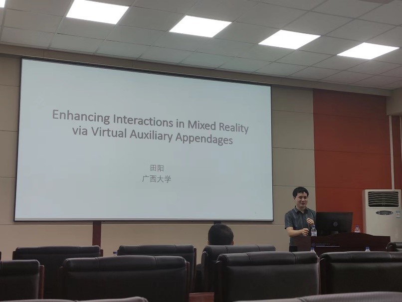 邀请,在吉林大学中心校区王湘浩楼A521作了题为“通过虚拟辅助附着体增强混合现实中的交互性”的学术报告。