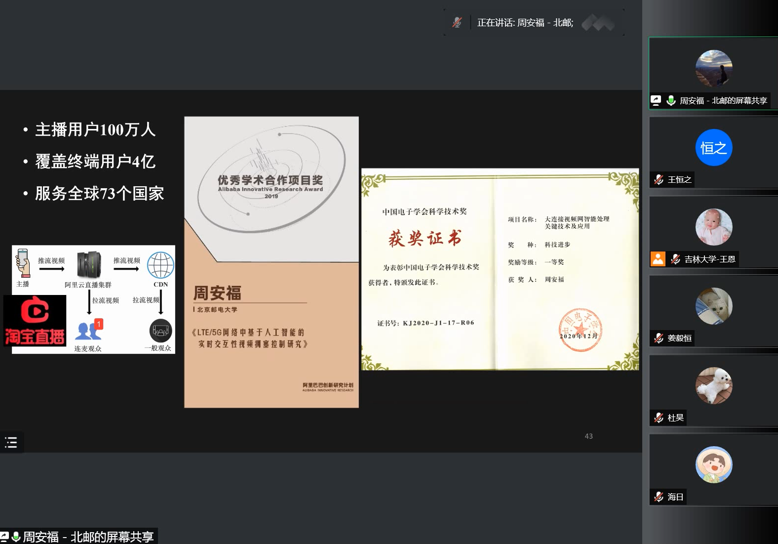 邀请,利用腾讯会议作了题为“基于强化学习的低延迟视频传输研究”的学术报告。永利娱乐城